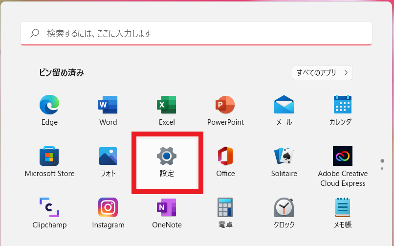 「設定」を選択します。